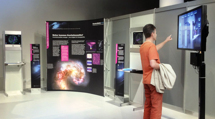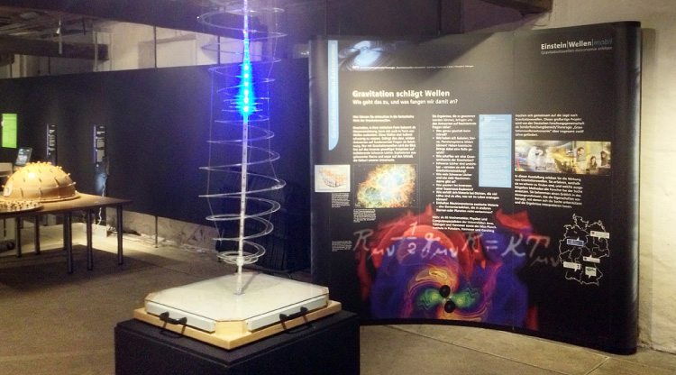 Entwicklung einer mobilen Wissenschaftsausstellung für interessierte Laien zum Thema Graviationswellen-Astronomie. Das modulare Konzept ermöglicht einen Aufbau an unterschiedlichsten Orten, auch als inhaltlich zusammenhängende Teilausstellungen. Komplexe Sachverhalte sind verständlich aufbereitet und werden vielschichtig multimedial unterstützt.